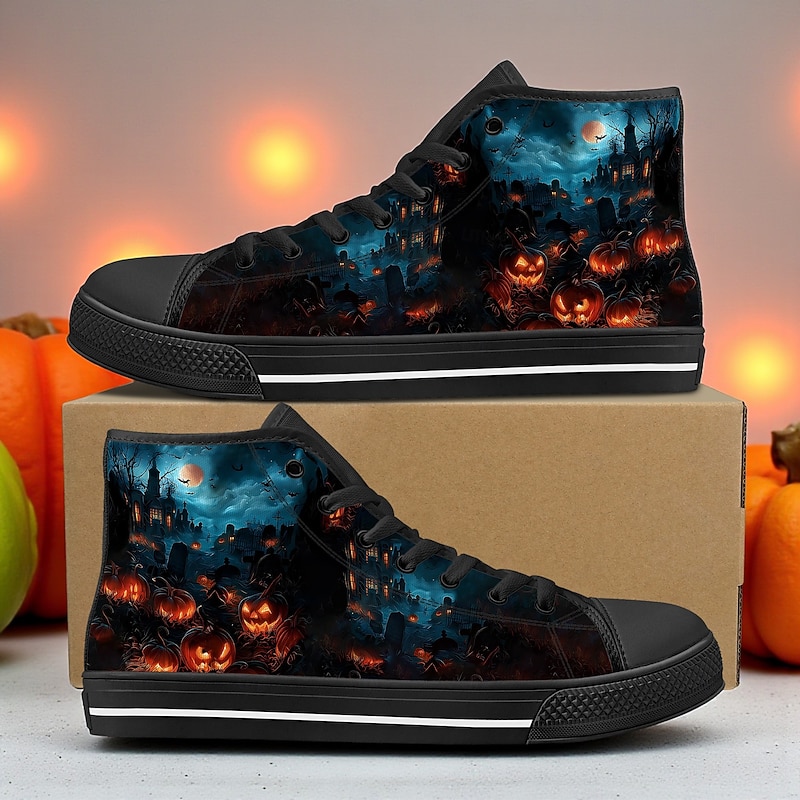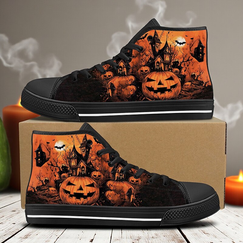 $46.99 - Men's Orange / Black High Top Sneakers with Halloween Pumpkin Print – Casual Festival Canvas Shoes for Party, Streetwear and Everyday Wear 2025. Shop for cheap Shoes For Men online? Buy at lightinthebox.com on sale today!