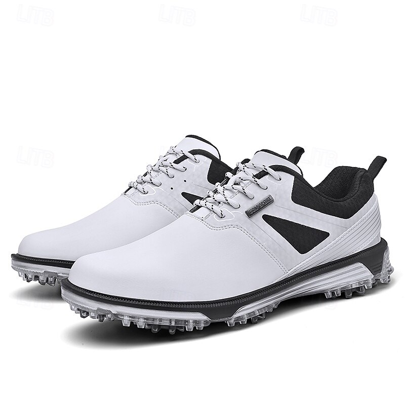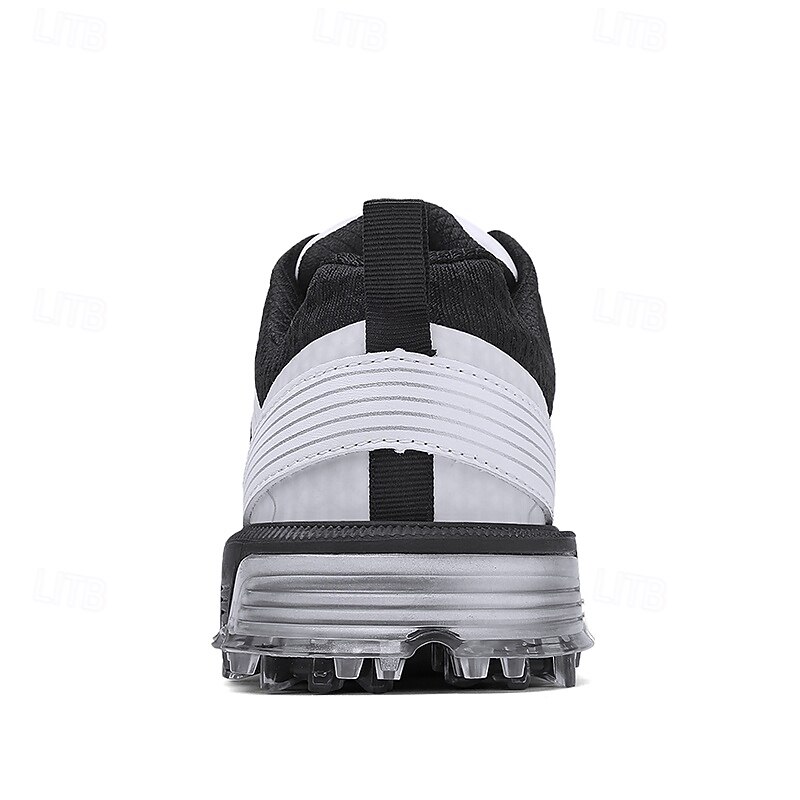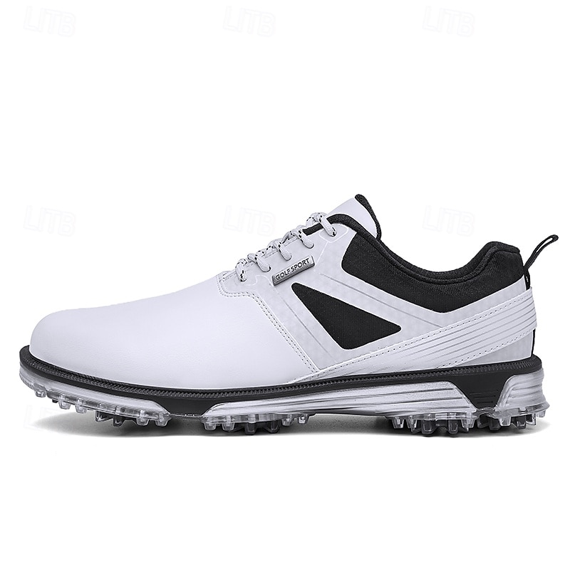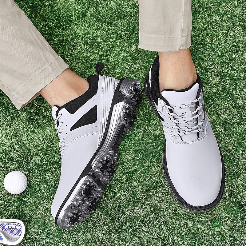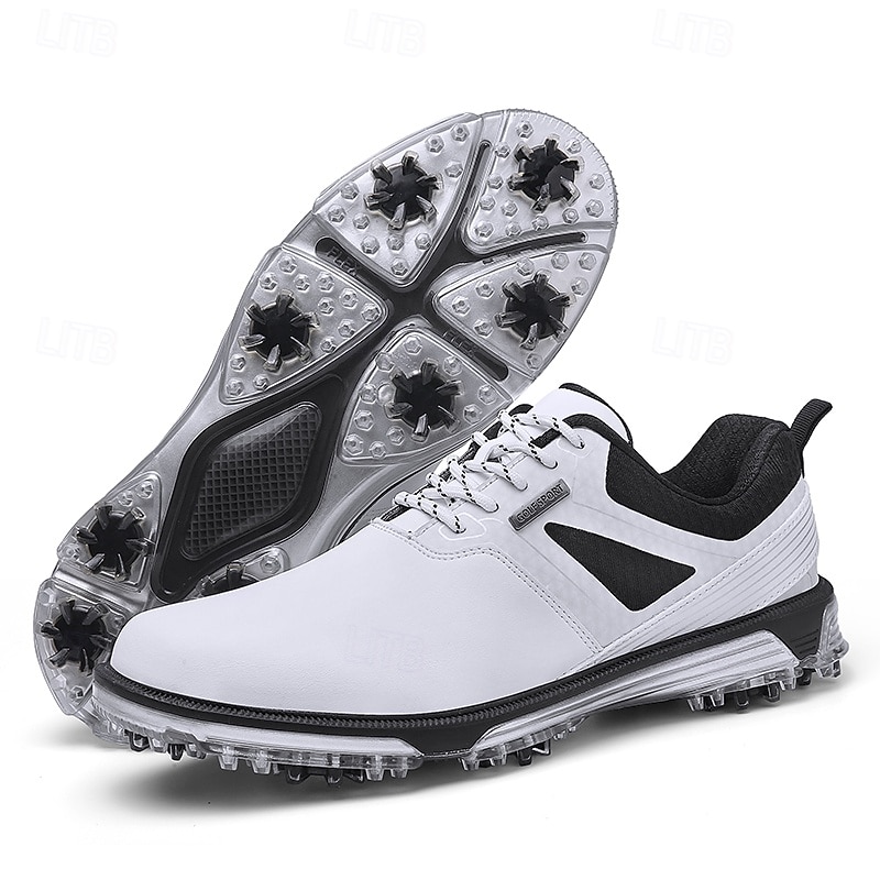 HOT ! Men's White and Black Golf Shoes with Spiked Sole, Breathable Upper, and Supportive Cushioning for Optimal Comfort and Performance on the Course