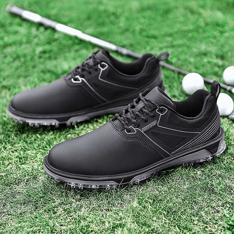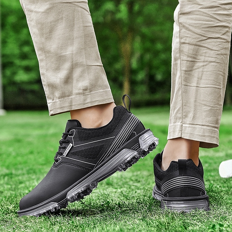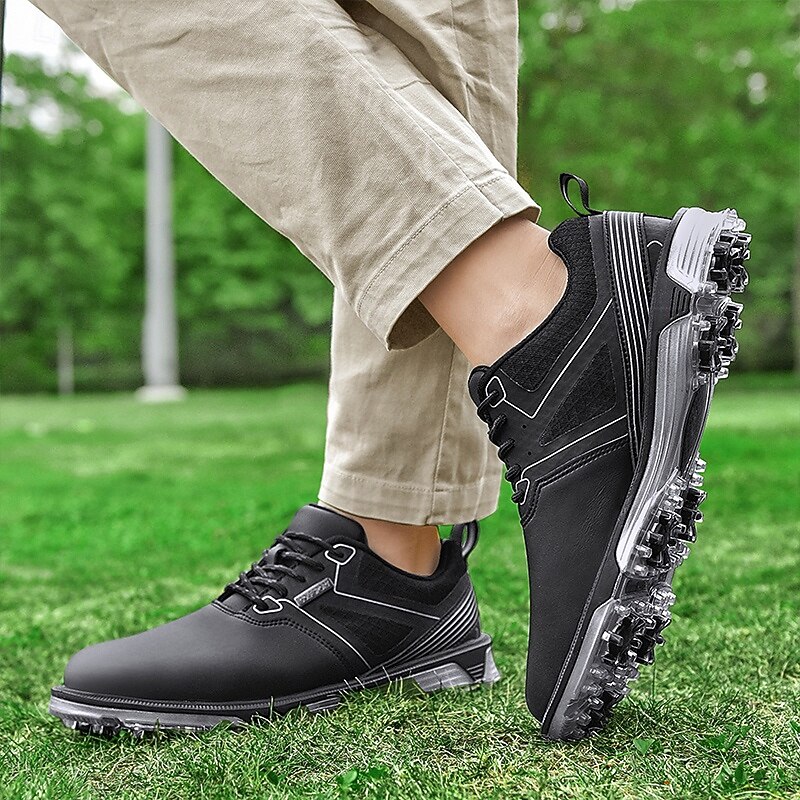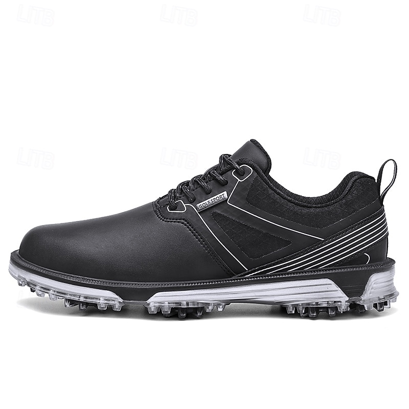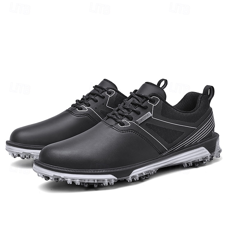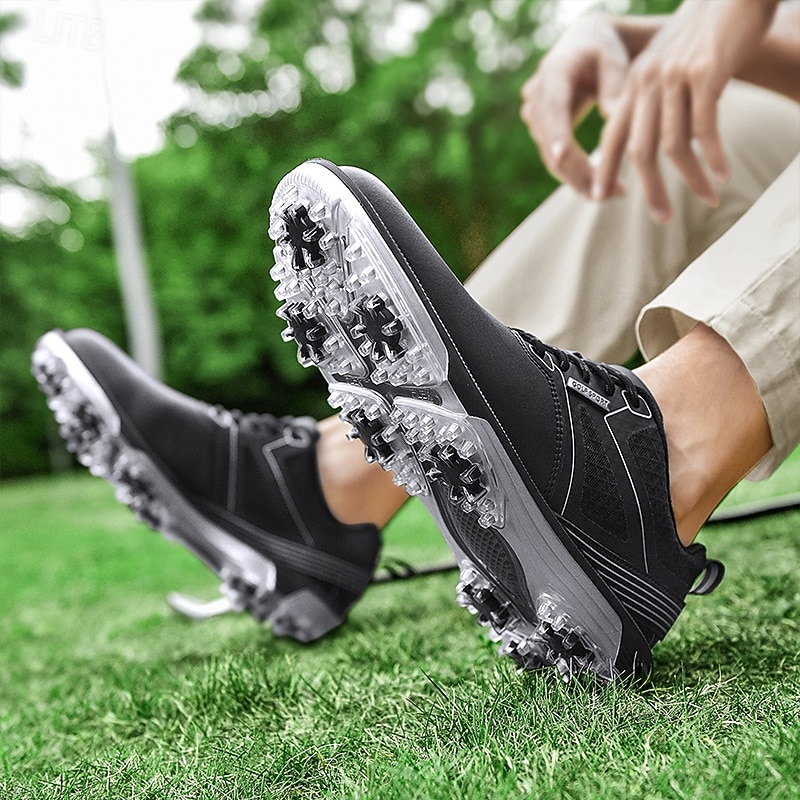 HOT ! Men's White and Black Golf Shoes with Spiked Sole, Breathable Upper, and Supportive Cushioning for Optimal Comfort and Performance on the Course