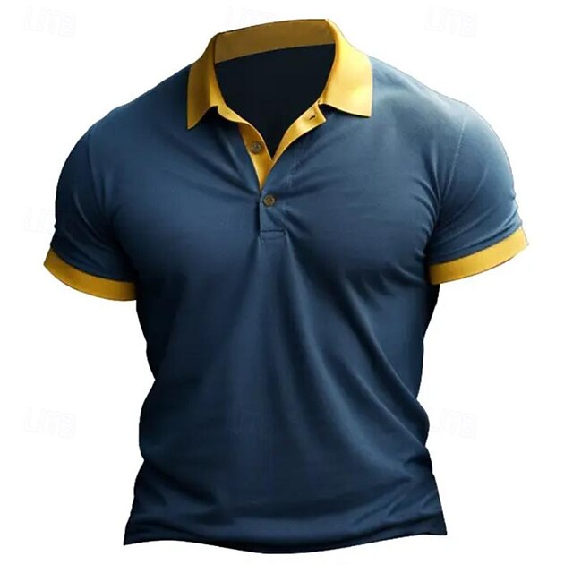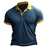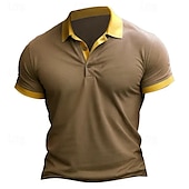 More information about Men's Golf Shirt Golf Polo Work Casual Lapel Short Sleeve Basic Modern Color Block Patchwork Button Spring & Summer Regular Fit Wine Black Blue Brown Golf Shirt