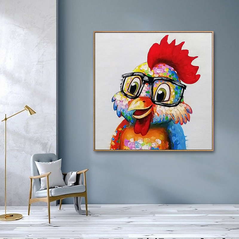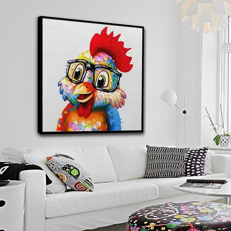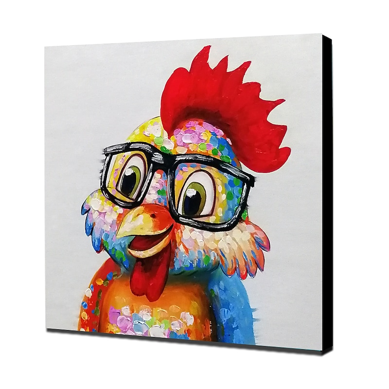 HOT ! Nursery Oil Painting Handmade Hand Painted Wall Art Pop Cartoon Chicken Animal Home Decoration Décor Stretched Frame Ready to Hang