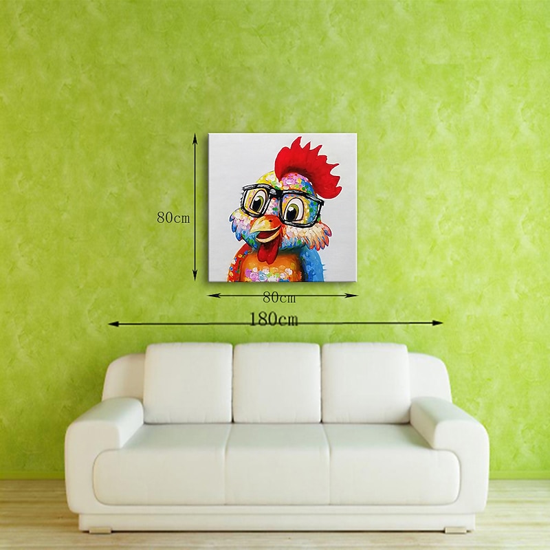 More information about Nursery Oil Painting Handmade Hand Painted Wall Art Pop Cartoon Chicken Animal Home Decoration Décor Stretched Frame Ready to Hang