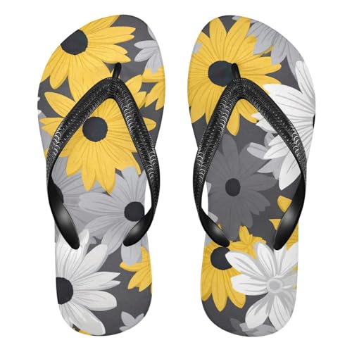 More information about Gray Yellow White Daisy Flower Men's & Women's Classical Beach Rubber Sandal Flip Flop Comfortable Slipper 214B2598