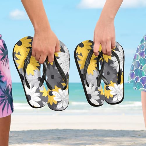 Gray Yellow White Daisy Flower Men's & Women's Classical Beach Rubber Sandal Flip Flop Comfortable Slipper 214B2598 6