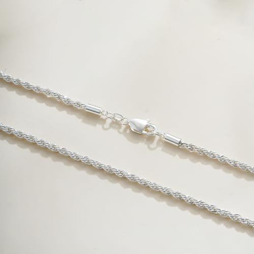 925 Sterling Silver Diamond Cut 3mm Rope Chain, Dainty Silver Chain for Men Necklaces Gifts for Men Father Boyfriends 7