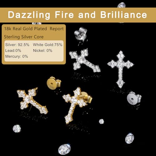 • 【Top Grade Moissanite Cross Earrings】 Sparkling top D color, VVSI Moissanite that emit the brilliant fire color that outshines diamonds and no other gemtstones in this world can be comparative. This cross earrings is hypoallergenic for sensitive ears,perfect to wear everyday and add a touch of glamour for a unique statement.