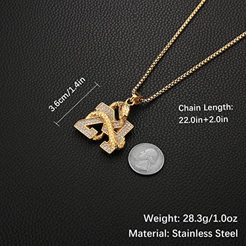 More information about AsAlways 18K Gold Plated Memorial 24 Legend Basketball Number Pendant Inlay CZ Hip Hop Rock Punk Totem Amulet Charm Snake Necklace Gift Jewelry