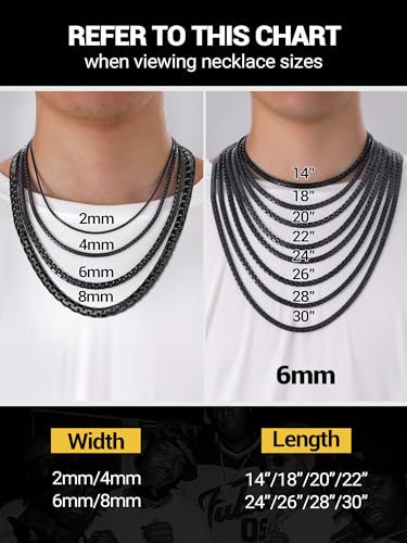 • Multiple Widths and Lengths: We have 3 widths for choice; 2mm/4mm/6mm, length options span 14–30in: women’s choker(14in)-5cm extender chain for adjustable, average women’s (16–20in), men’s choker (18in), and average men’s(20–24in), can refer to our length measurement reference to choose the appropriate length.