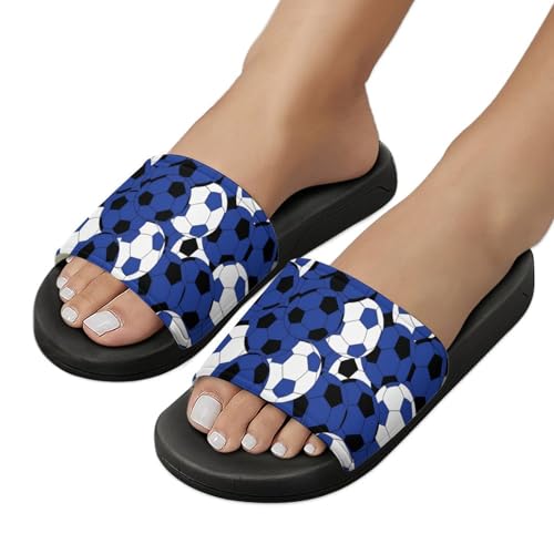 Dark Blue Soccer Ball Slippers for Women Rubber Slides Womens Sandal Slippers 7
