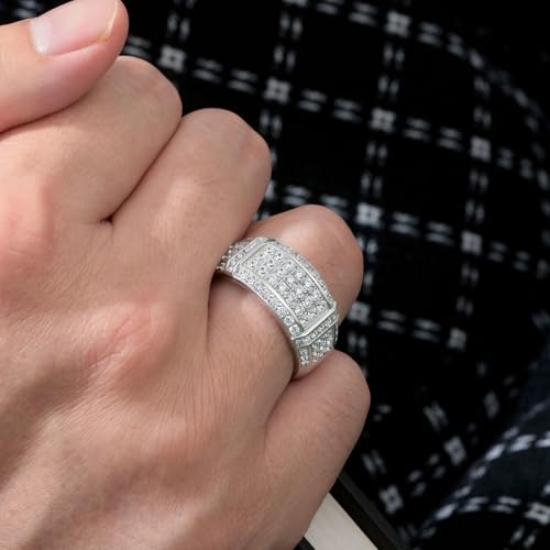 SHELOVES Mens Wedding Rings 925 Sterling Silver Rings Wedding Band for Man Round Cut AAAAA Cubic Zirconia CZ Sz 8-13 1