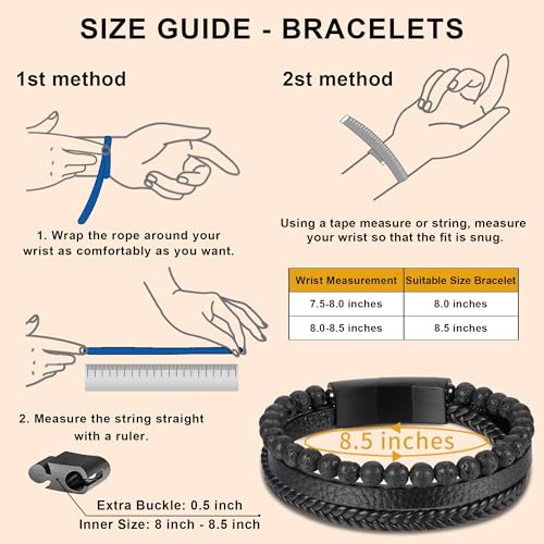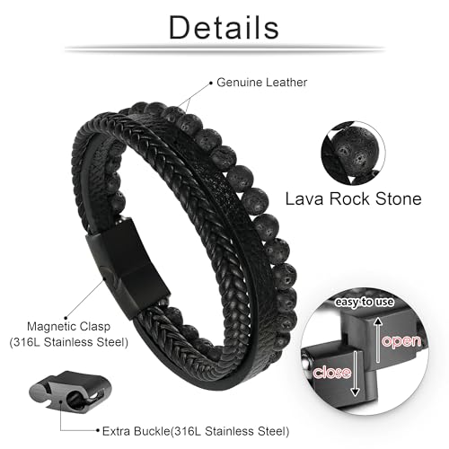 • MATERIAL: This leather beads bracelet is made from braided leather, natural lava rock stone and high quality stainless steel. Leather beadsbracelet is lead and nickel free, hypoallergenic. The perfect bracelet for men everyday wear
