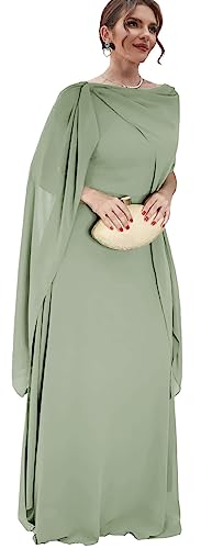 Chiffon Mother of The Bride Dresses for Women Long Formal Mother of The Groom Dress with Cape 6