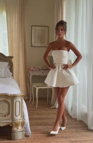 • Features: This 2025 short homecoming dress is capable of satin fabric, jacquard pattern, adjustable bow, a-line silhouettes, corset back, mini length, strapless design.Used for short homecoming dresses for teens, 2025 satin hoco dress, strapless prom dress ,ruched birthday party dresses, cute bow sweet 16 dresses, sexy mini cocktail dress.