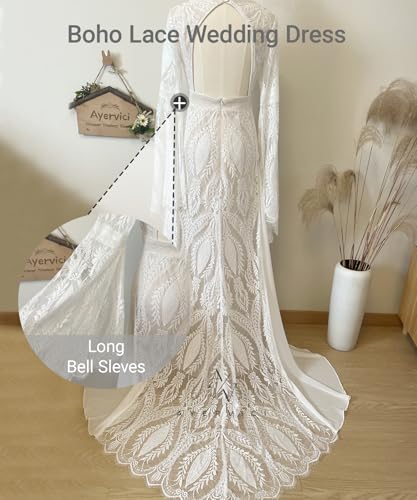 • Bohemian Design:This wedding dress combines timeless elegance and modern sophistication.The dress features long bell sleeves for a dramatic and graceful touch,paired with A-line silhouette that complements every body type.