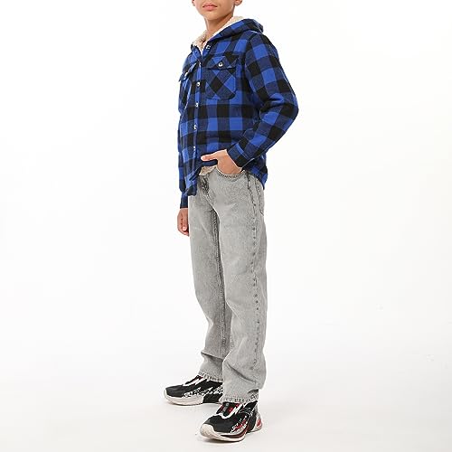 ThCreasa Boys Plaid Button Down Flannel Shirt Jacket Sherpa Lined Hooded Jackets 6