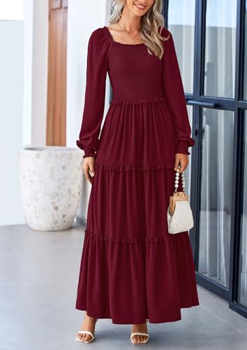 • Dressy Casual Dress: The Solid Color Adds A Touch Of Sophistication, While the Square Neck and Ruffle Details Give It A Trendy and Feminine Look. The Smock Waist Creates A Flattering Silhouette, and the Flowy Maxi Length Adds A Touch of Bohemian Charm
