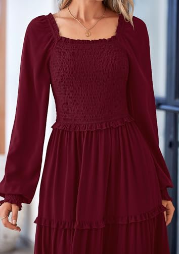 PRETTYGARDEN Fall Wedding Guest Dresses for Women 2025 Long Sleeve Square Neck Tiered A Line Modest Elegant Flowy Dresses 5