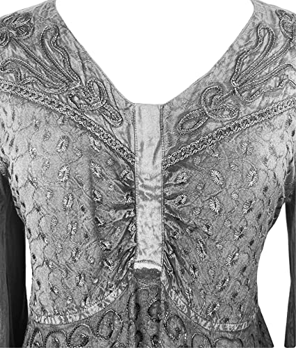 Agan Traders Women's 2025 Sping Bohemian Medieval Renaissance Embroidered Bell Sleeve Flared Calf Length Dress Gown 4
