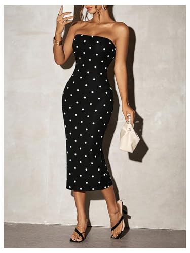 • Features: Strapless bodycon dresses for women, polka dots, strapless, sleeveless, backless, midi length
