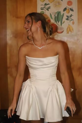Satin Cowl Neck Homecoming Dresses for Teens 2025 with Bow Strapless Short Prom Cocktail Party Gown 5