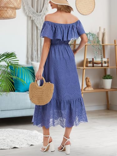 Women's Summer Midi Dress High Waist Off Shoulder Ruffle Short Sleeve Hollow Out A Line Casual Long Dress 2025 2