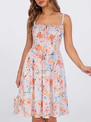 • 【FUNCTIONAL POCKETS AND FASHIONABLE LACE-UP FRONT DESIGN】: *We recommend to wear a strapless bra.* This is women's summer casual dress with pockets. Both sides have nice pockets are great for carry your phone or useful items. Cute Structure "Lace-up front design lets you tighten or loosen the dress for the perfect snug fit and gathered bust features add some pizzazz and give the dress romance personality. It hides you imperfections just right.