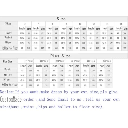• Size:Before ordering, Please refer to our Size Chart Image,we also offers customized size service, which can customize your own size. Please choose "One Size" option and you will get a perfect custom made prom dress