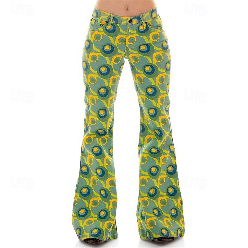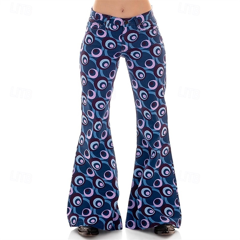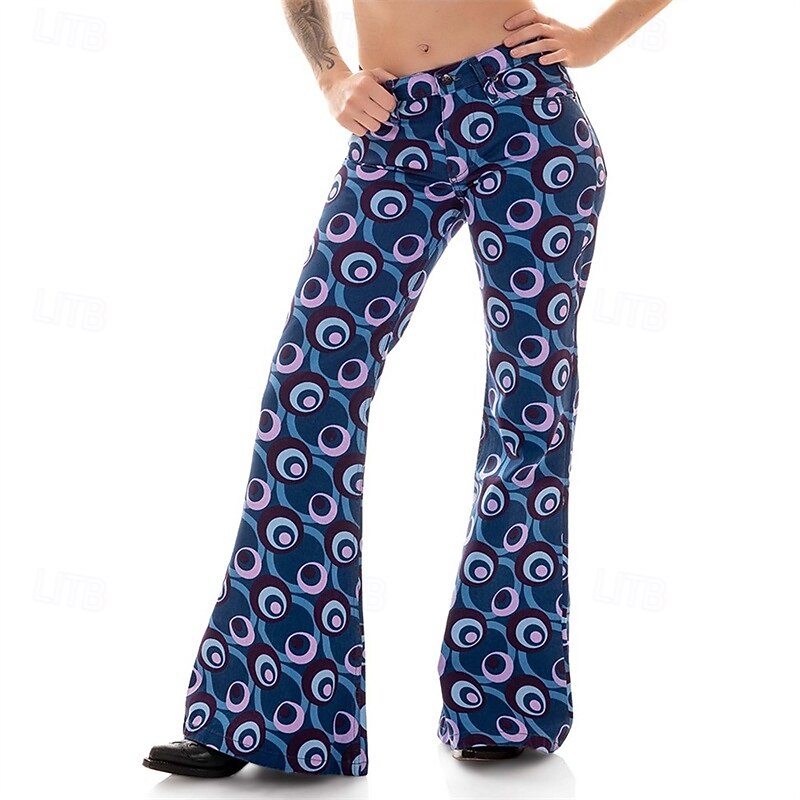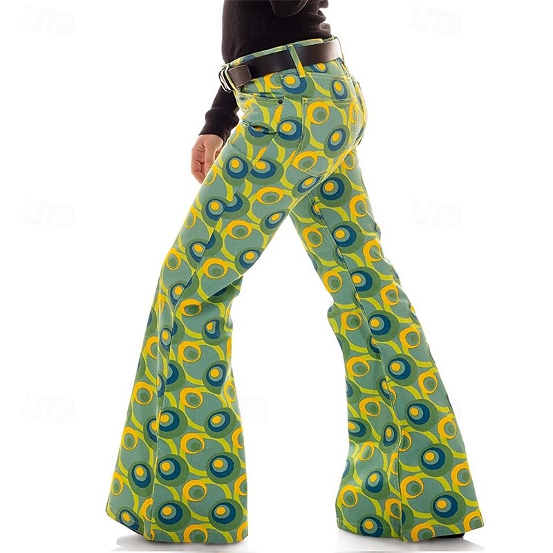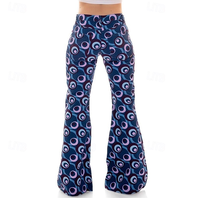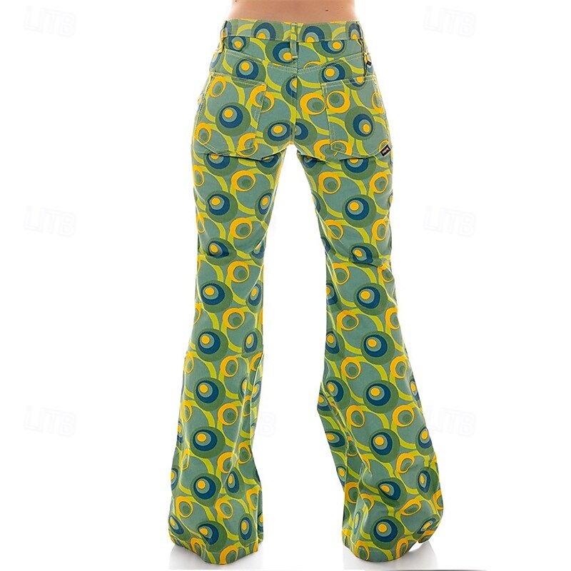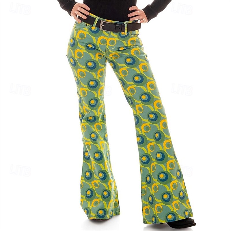 Retro Vintage 1970s Groovy Bell Bottom Pants Flared Trousers Disco mid rise Psychedelic Fancy Dress Women's Halloween Carnival Vacation Music Festival Festival Adults' Pants 1