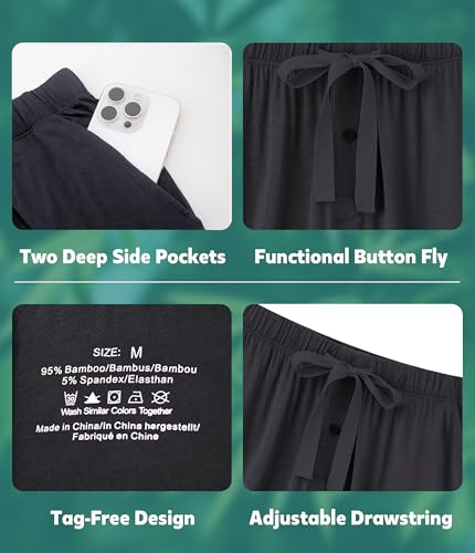 More information about CF Men's Pajama Bottoms Bamboo Rayon Sleep Lounge Shorts Soft Pj Bottoms Lightweight Elastic Waist Pants with Pockets 2 Pack