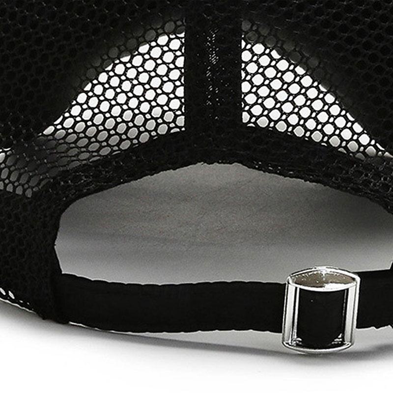 The bold color options, including black, white, red, blue, and khaki, are enhanced with striking letter patterns on the front, giving the cap a fashionable and modern flair. The reinforced mesh back panels increase ventilation, keeping you cool during any activity.