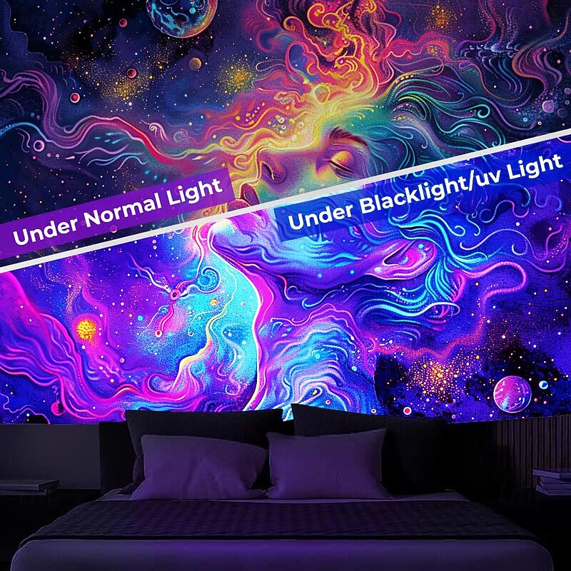 HOT ! Blacklight Tapestry UV Reactive Glow in the Dark Glow Party Neon Arty Woman Psychedelic Trippy Misty Hanging Tapestry Wall Art Mural for Living