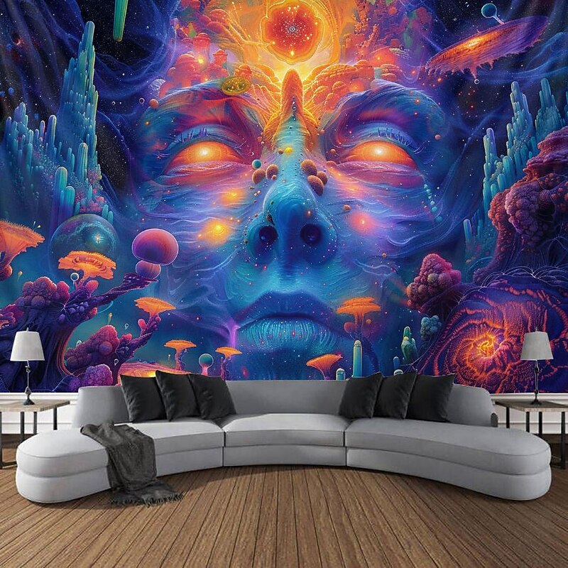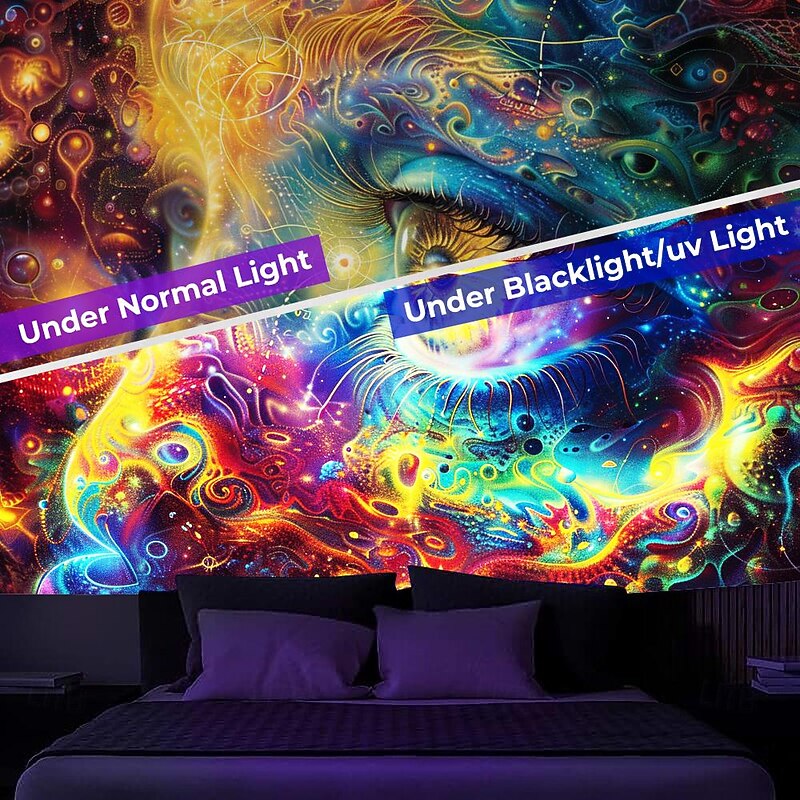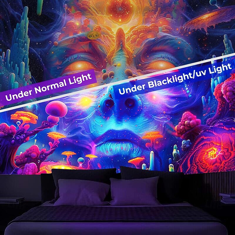 Highlights 【Durable Construction】 Crafted with high-quality polyester fabric, this tapestry is built to last. Its robust composition ensures that you can enjoy its beauty for years to come. 【Soft and Lightweight】 This tapestry is soft to the touch and lightweight, making it perfect for both indoor and outdoor use. 【Multiple Size Options】 Available in different sizes to accommodate any room's dimensions. 【Intricate Design】 The tapestry features a captivating design inspired by life itself. Its vivid imagery, crisp lines, and vibrant colors will become a conversation piece in any room. 【Versatility at Its Best】 Not just for wall decor, this tapestry can also double as a tablecloth or a picnic blanket, adding functional versatility to its artistic charm. 【Note】 1. Please allow 1-2cm (0.4"-0.8") deviations due to manual measurement. 2. Please understand the tiny color vary from the product due to different light and screen display. 3. UV/Black Light Reactive: This glow in the dark tapestry glows under blacklight / UV light. In normal light, the colors also are full and vivid.