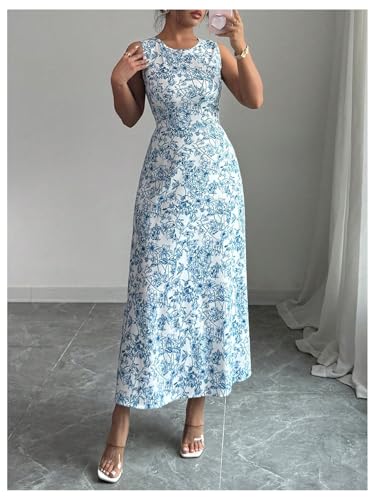 HOT ! Floerns Women's Floral Sleeveless Tank Dress Crew Neck Vacation A Line Long Dresses