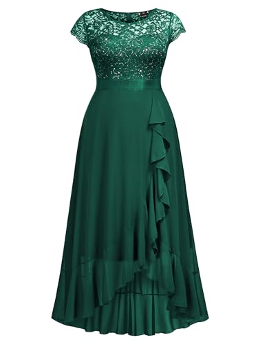 HOT ! Miusol Women's Plus Size Sequin Floral Lace Elegant Ruffle Formal Evening Party Maxi Dress