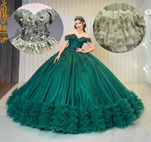 Ftupza Lace 2 in 1 Quinceanera Dresses Ball Gown Floral Off Shoulder Sweet 15 16 Dresses Ruffle Tulle Prom Gowns 3