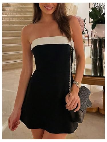 HOT ! GORGLITTER Women's Strapless Tube Mini Dresses Color Block Backless Summer Prom Elegant Wedding Guest Graduation Dress