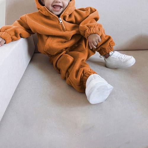 EnJoCho Soft Snowsuit Winter Kids Outfit Soft Cotton Warm Crewneck Long Sleeve Hooded With Pockets Solid Color Sports 6