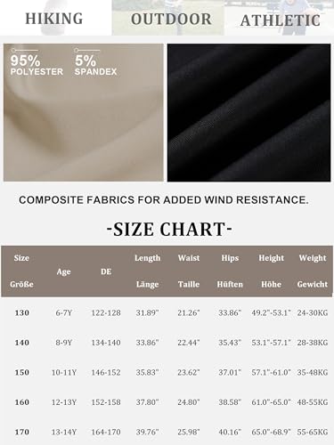 • Composite Fabric: Constructed from a blend of polyester and spandex, our boys hiking cargo pants are windproof and feature a water-resistant coating. This composite fabric ensures sturdy and comfortable.