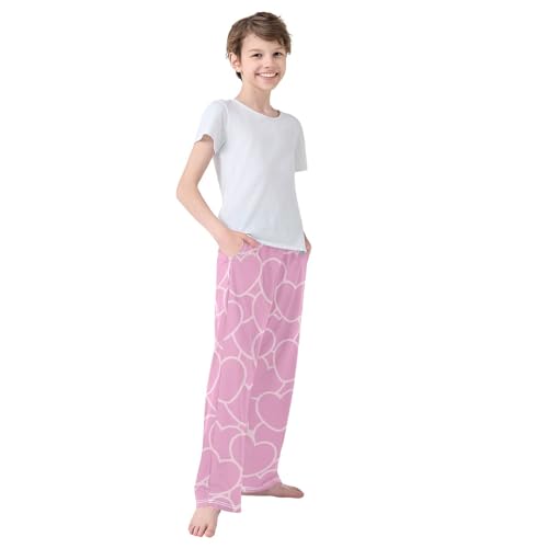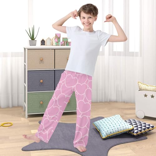 Pink with Heart Boys Pants Boys Athletic Pants Long Pant for Boywith Pockets Wide-Leg Size 6-14Y 4