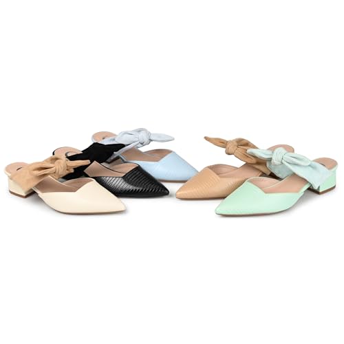 • Heel Height: 1 1/2-inch. Heel Type: Block Heel. Platform Height: Flat-inch. Shoe Width: Medium. Closure Type: Slip-on. Strap Type: Single Band. Toe Style: Pointed. Lining: Faux Leather. Upper Material: Vegan Leather. Outersole Material: Man-made. Footbed: Padded. All measurements are approximate and were taken using a size 6. Please note measurements may vary slightly by size.