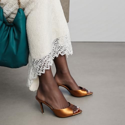 Women's Leather Pointed Toe Stilettos Heeled Sandals Fashion Sexy Open Toe Slip On Backless High Heels Slides for Party Prom Date Dress Shoes