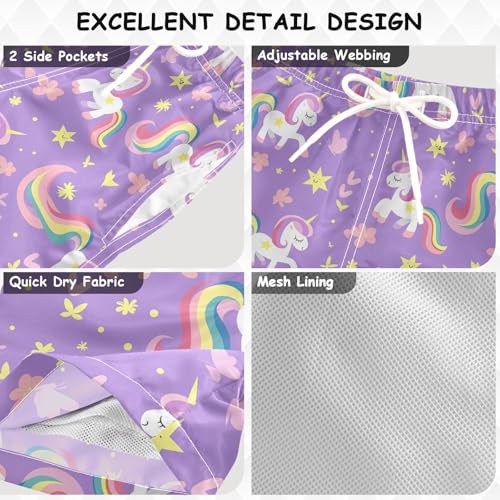 visesunny Summer Boy's Beach Shorts Colorful Purple Unicorn Quick Dry Swim Trunks Baby Boy Bathing Suit 4