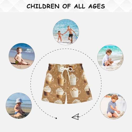 Pigsaly Boys Swim Trunks Hot Drink Coffee Latte Coffee Bean Boys Board Shorts Swimsuit Swimwear Summer Bathing Suit 4T 6