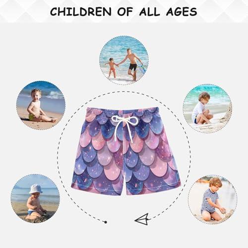Swim Shorts for Boys, Anti Chafe Swim Trunks for Boys 2 T, Purple Pink Blue Mermaid Scales 4