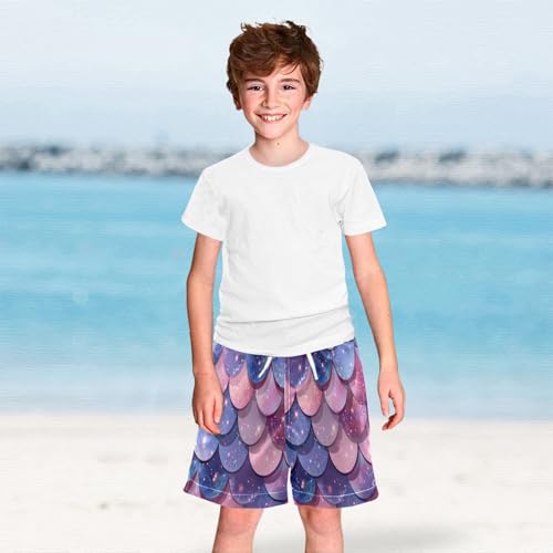 HOT ! Swim Shorts for Boys, Anti Chafe Swim Trunks for Boys 2 T, Purple Pink Blue Mermaid Scales