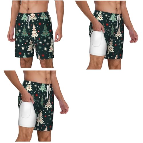 Men's Swim Trunks Quick Dry Board Shorts Christmas Tree Pattern Beach Shorts with Pocket Bathing Suits for Men 6