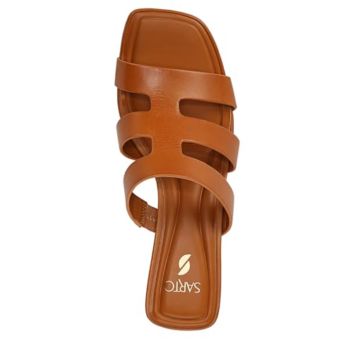 HOT ! Franco Sarto Womens Flexa Carly Heeled Slide Sandal Tan Brown Leather 9.5 M