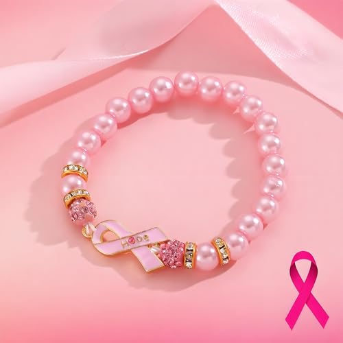 HOT ! Breast Cancer Awareness Bracelets Pink Ribbon Charm Beads Bracelet for Women Encouragement Breast Cancer Jewelry