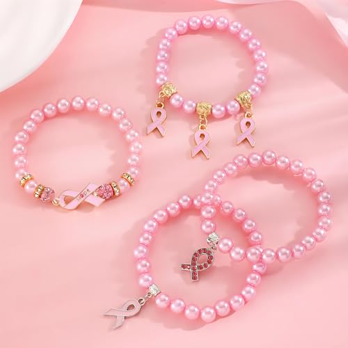 Breast Cancer Awareness Bracelets Pink Ribbon Charm Beads Bracelet for Women Encouragement Breast Cancer Jewelry 4