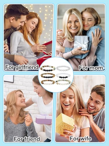 Healing Beaded Bracelets for Women - 6 Pcs Natural Lava Stone Gemstone Crystal Agate Anxiety Stress Relief Yoga Aromatherapy Essential Oil Diffuser Bracelets Mom Wife Friends Gifts 4